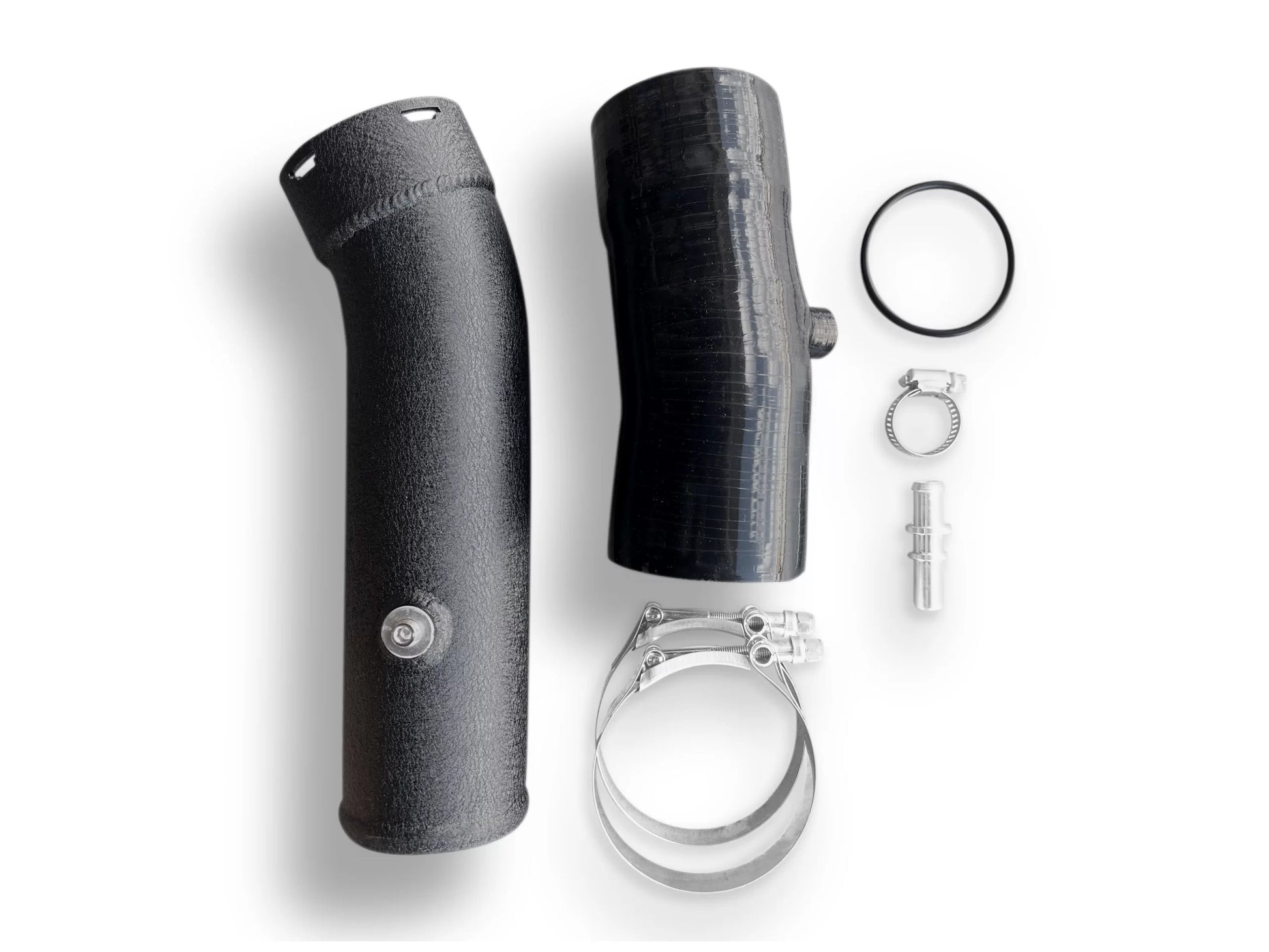 Manufactured from top-grade mandrel-bent aluminum, the pipe kit also features 4-ply CVF-branded couplers as well as high-capacity t-bolt clamps. The pipe also features a 1/8th NPT bung plug for water/meth injection.