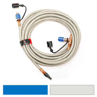 2-Tire Kit: Designed for motorcycles, trailers, or smaller setups. Inflate or deflate two tires at once. Includes the Thor's Hammer Manifold, one 25' hybrid hose, and a durable carrying bag. Rated for 300 PSI with a 3-Year Warranty.